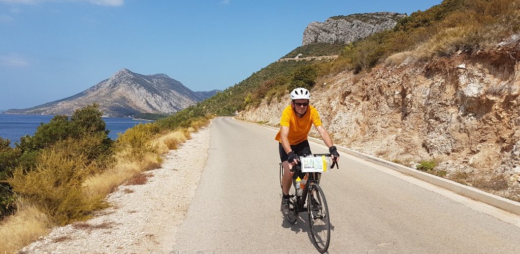 4 Swimming. In the morning before you ride, when you feel like it along the ride, or even to cool down after the ride! On the islands there are so many places to take a cooling dip in the lovely clear waters that a hotel pool seems surprisingly unattractive at the end of day. You dry off quickly and as most of the beaches are stony, there’s no irritating sand to get everywhere afterwards! Just pack a pair of sandals or Crocs or equivalent – there are sea urchins in places, although we didn’t find any near the shoreline.
