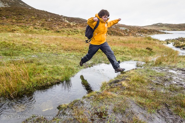 We convinced ourselves that we weren’t necessarily going up the scrambly section, but there was another lake to visit, so that had to be the next objective. A wet and boggy section provided some entertainment in the form of bog hopping, then a sheltered rock provided us with perhaps the only sheltered spot for a bite to eat.